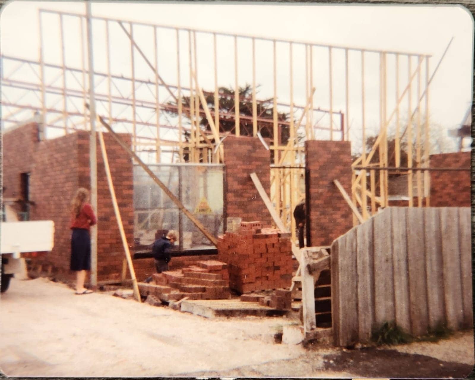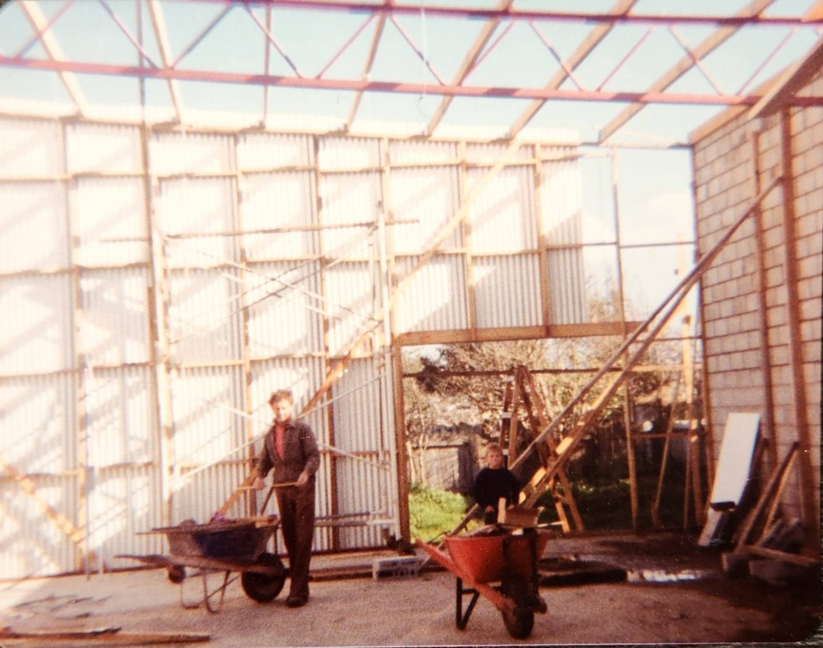 The whole family was involved from groundworks to fitout. Here a 6 year old Ben is helping the bricklayer.