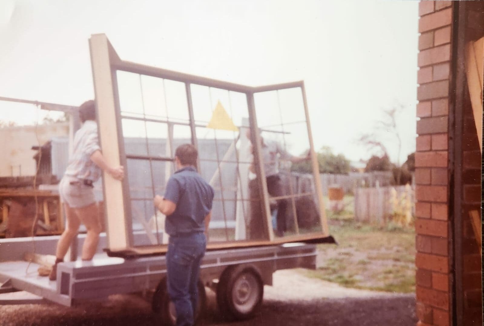 Circa late 1980's. Loading up a bay window with colonial bars ready for install.