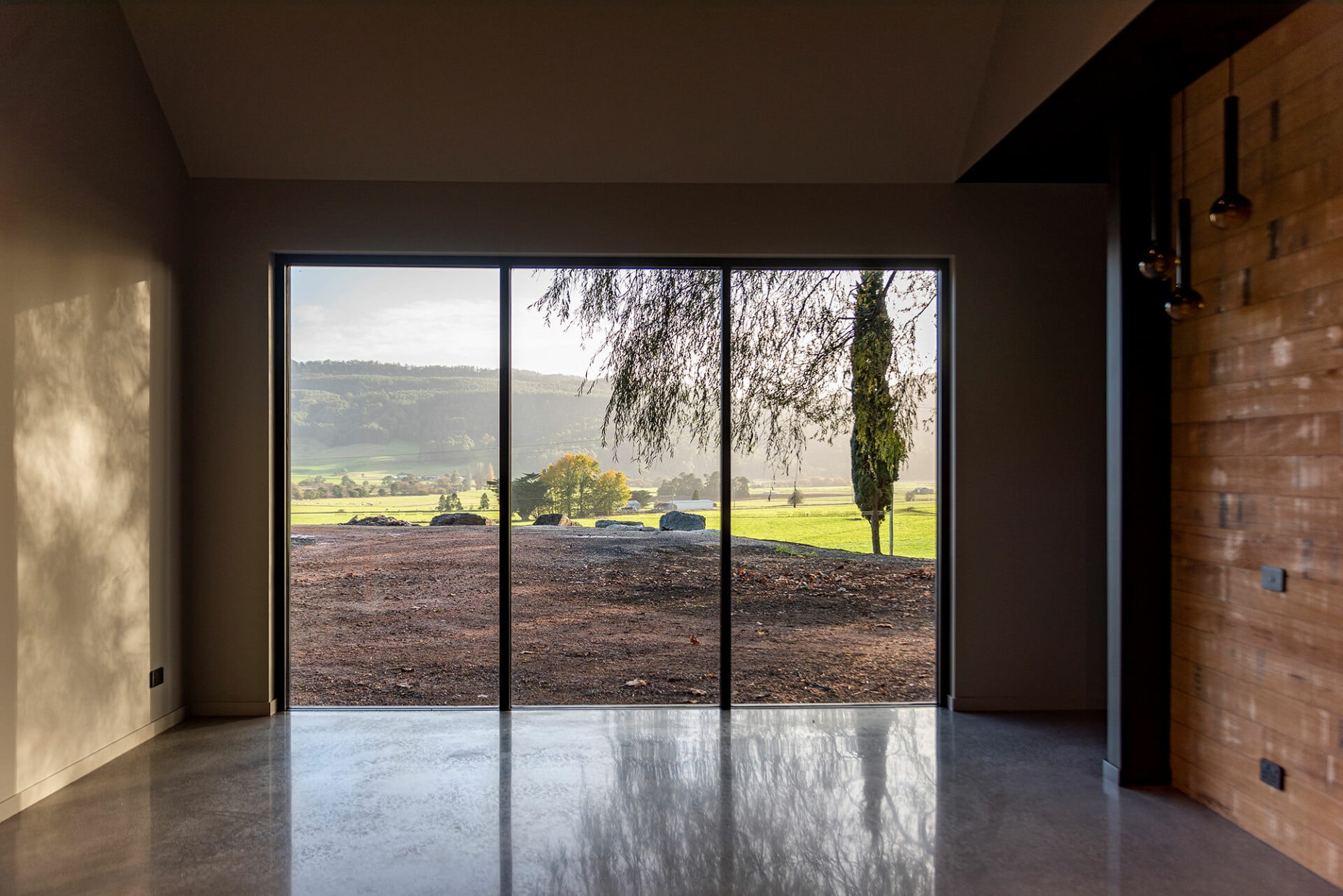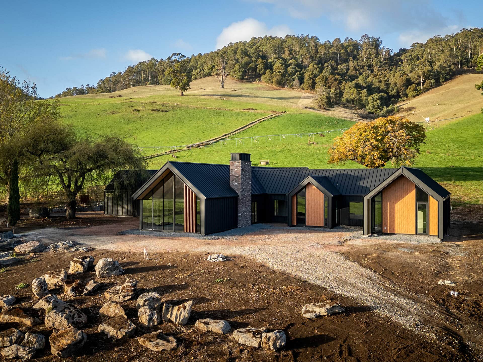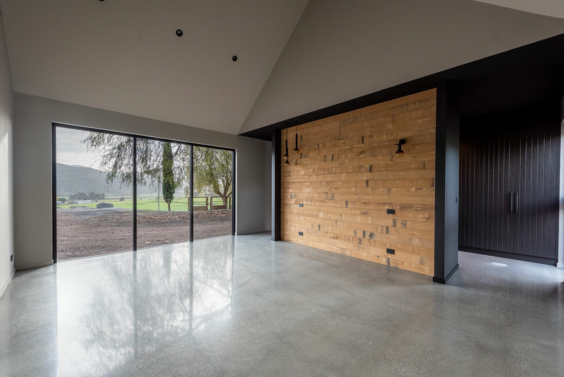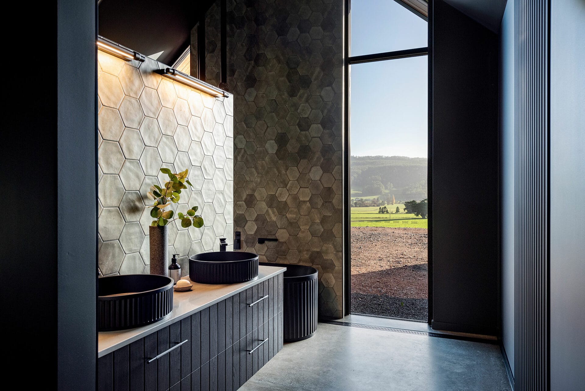 The homeowners of this property have taken full advantage of the privacy afforded on acreage with floor to ceiling windows, and the whole design of the house has benefitted. It was a pivilege to work with Heazlewood Homes to bring this striking architectural pocket to life amongst the rolling hills of Gunns Plains.