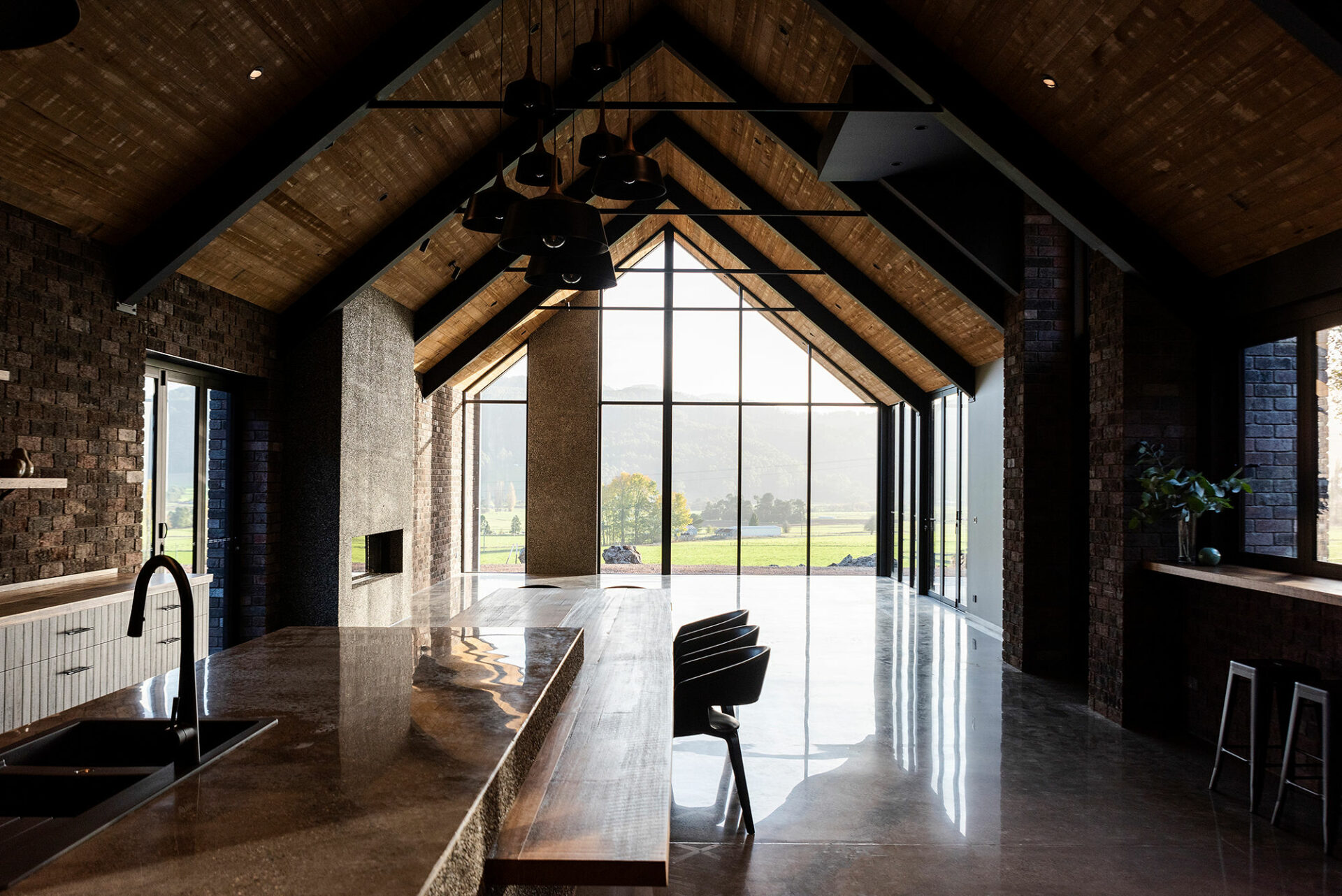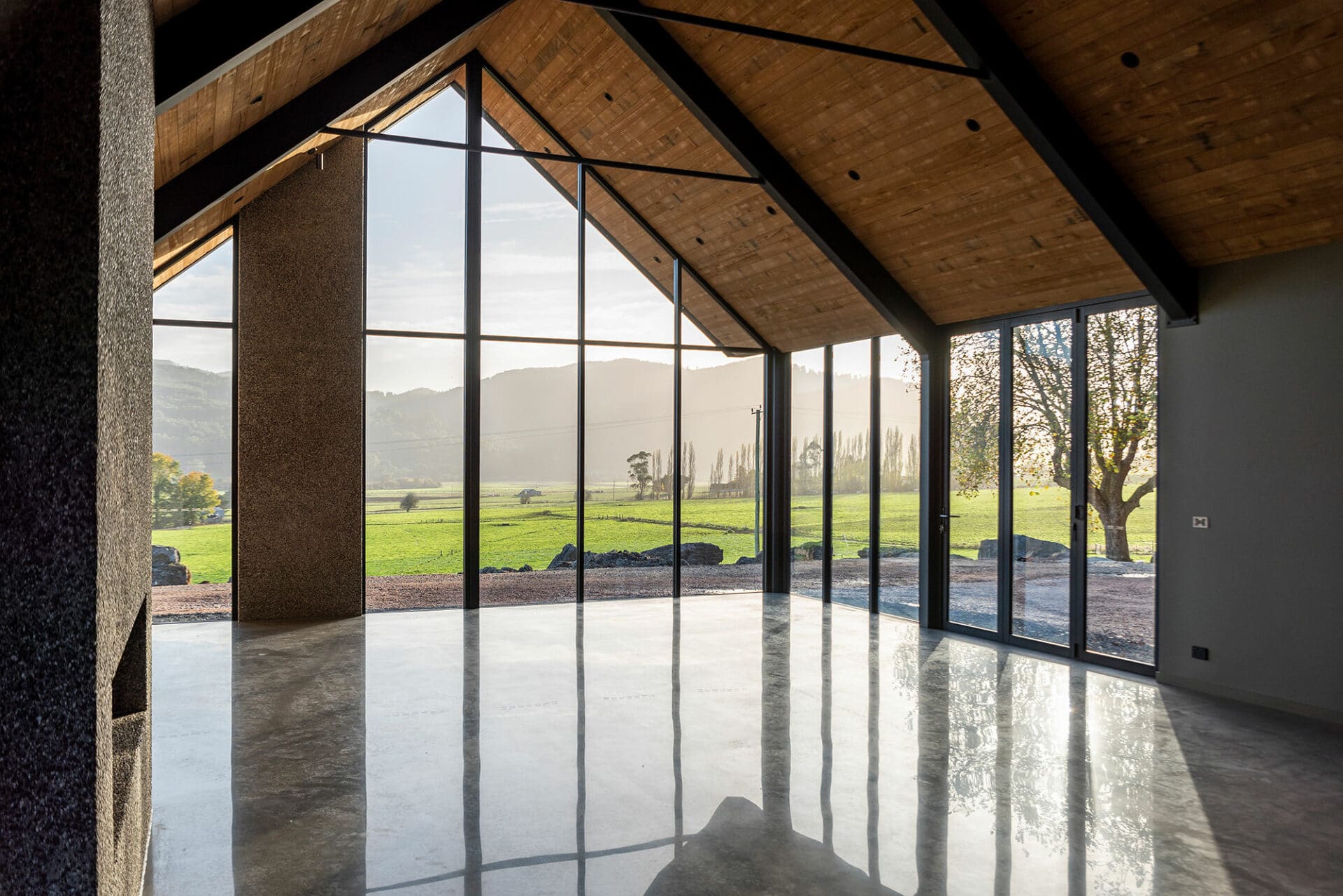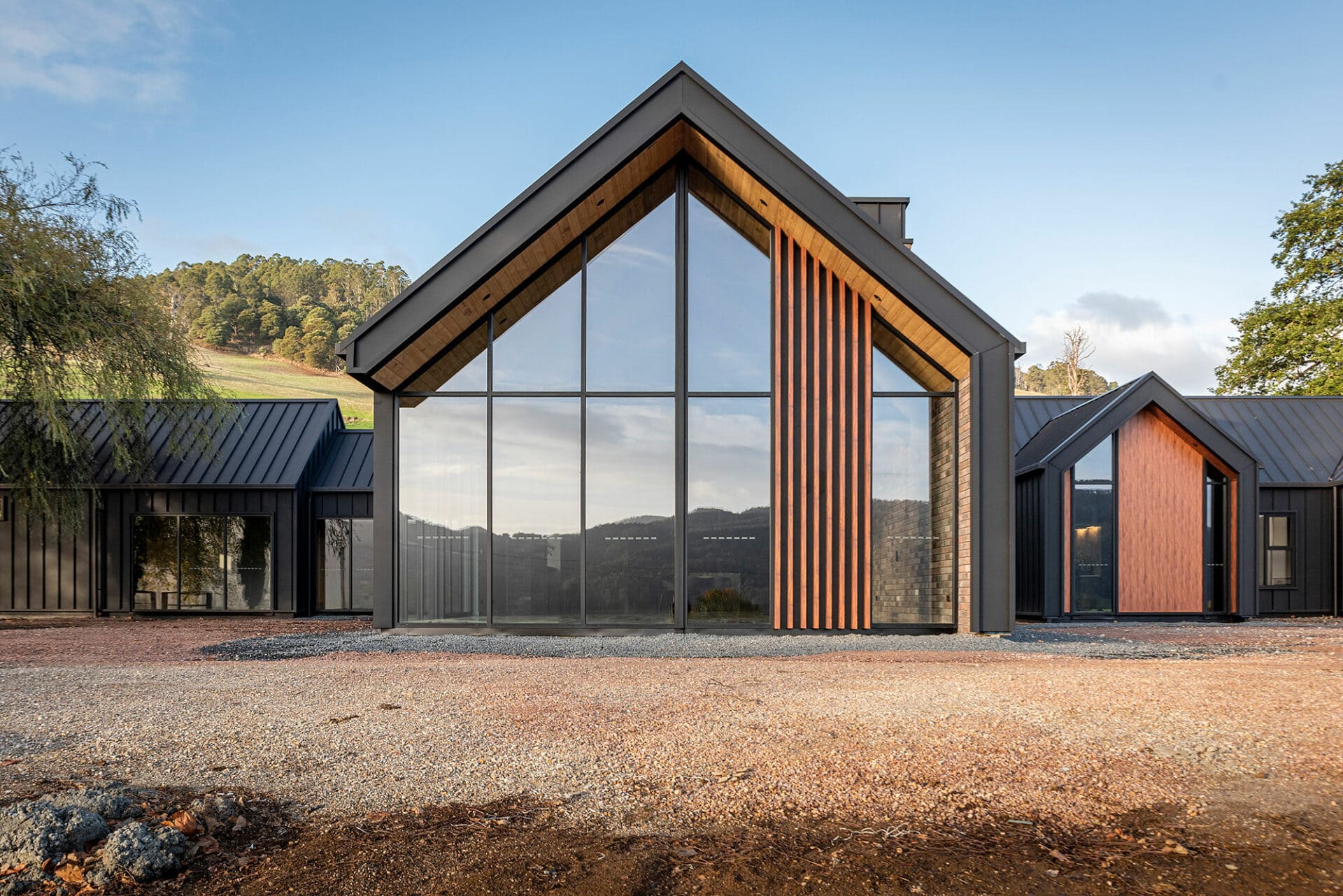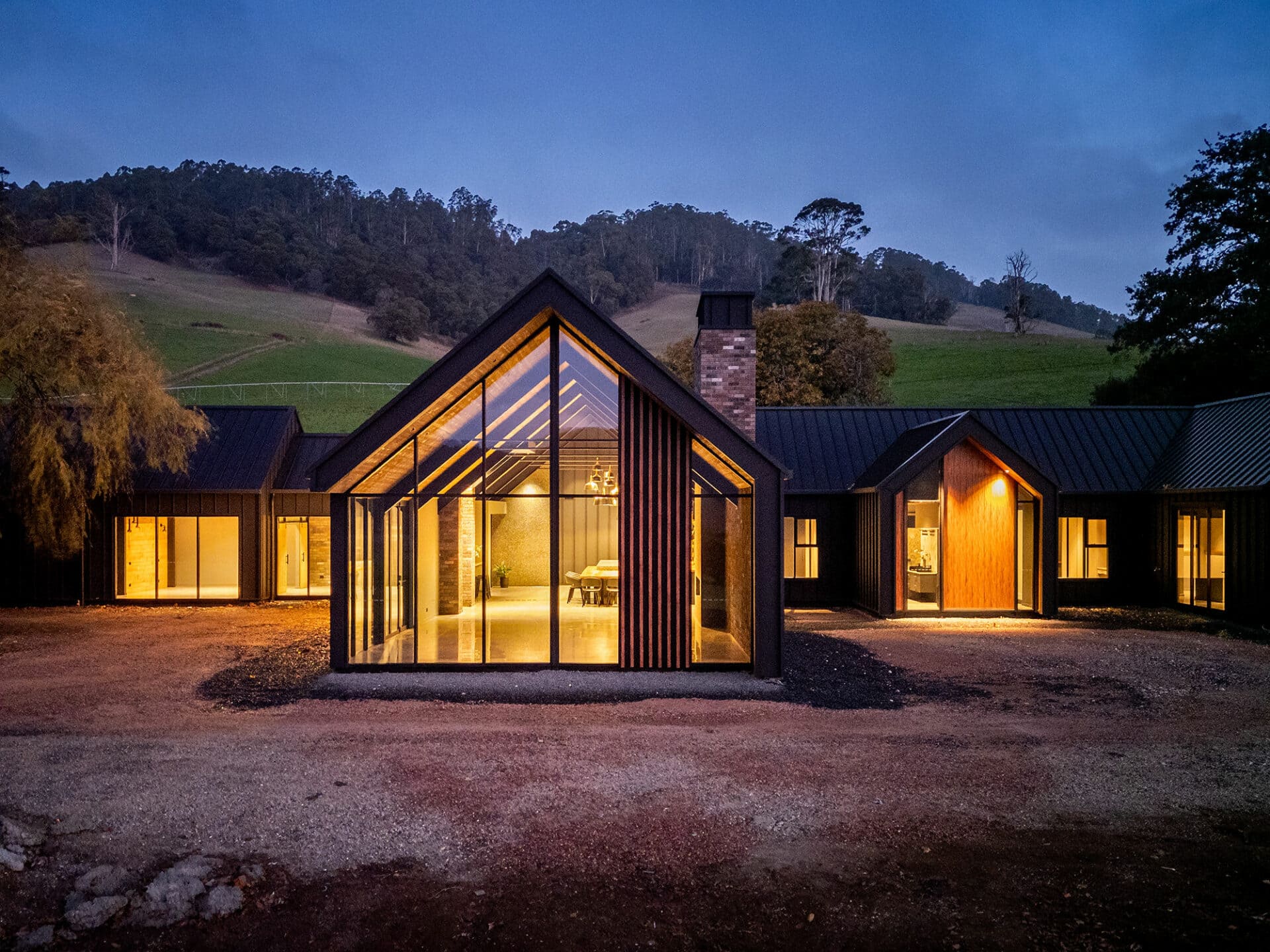 The homeowners of this property have taken full advantage of the privacy afforded on acreage with floor to ceiling windows, and the whole design of the house has benefitted. It was a pivilege to work with Heazlewood Homes to bring this striking architectural pocket to life amongst the rolling hills of Gunns Plains.