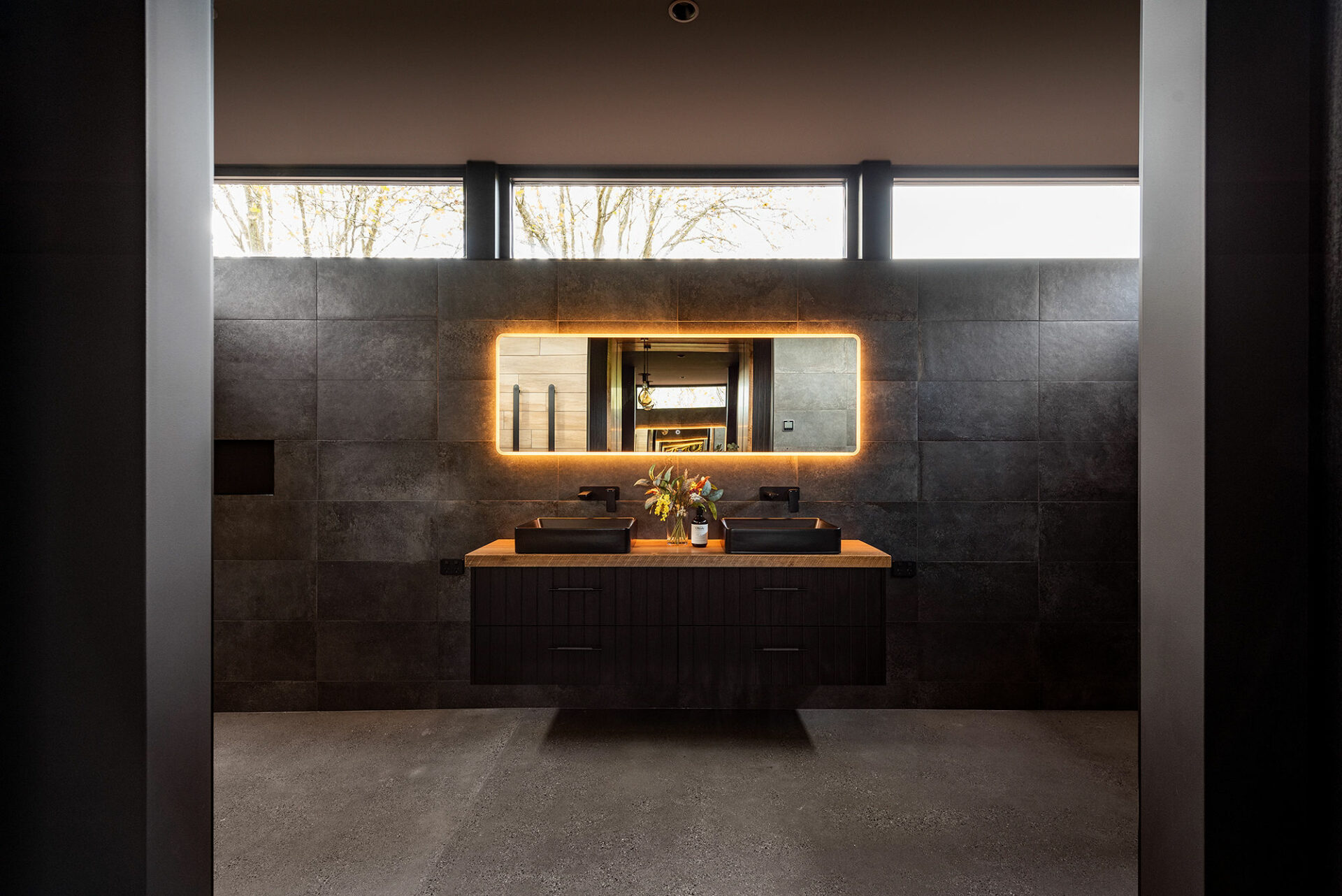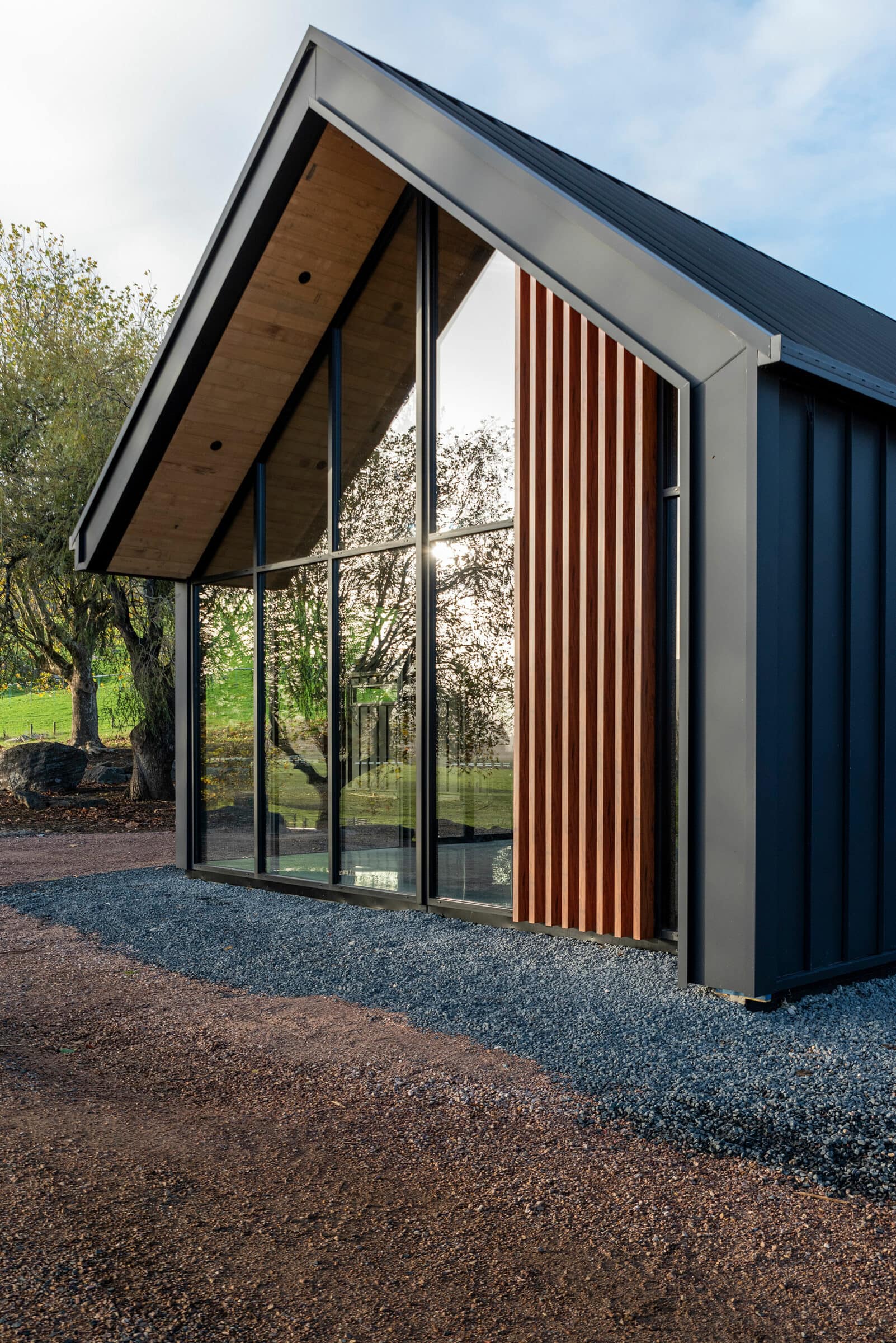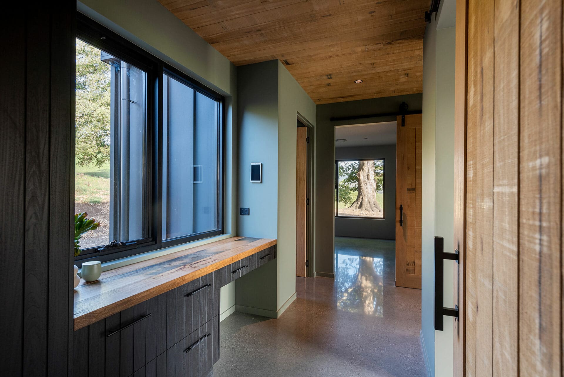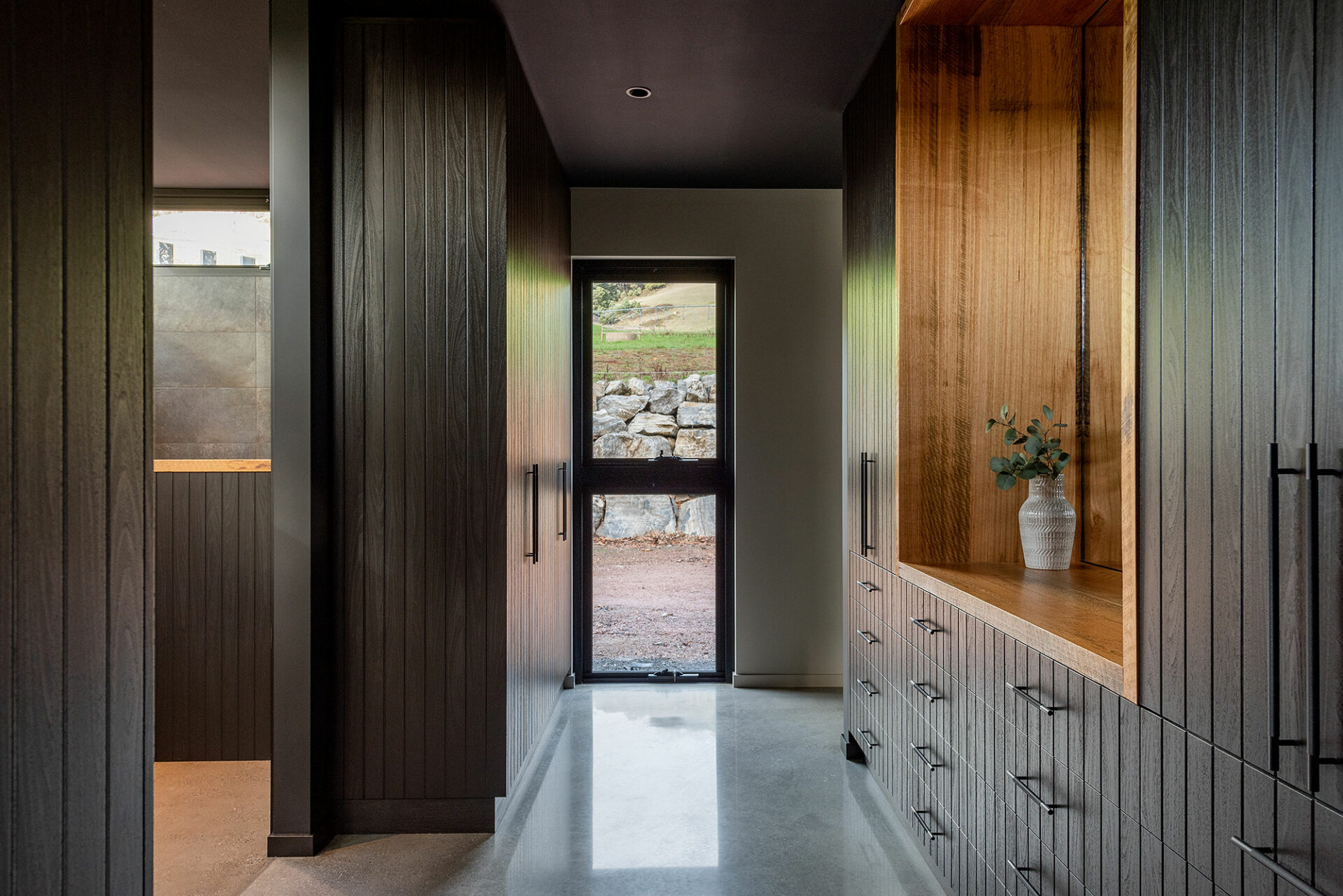 The homeowners of this property have taken full advantage of the privacy afforded on acreage with floor to ceiling windows, and the whole design of the house has benefitted. It was a pivilege to work with Heazlewood Homes to bring this striking architectural pocket to life amongst the rolling hills of Gunns Plains.