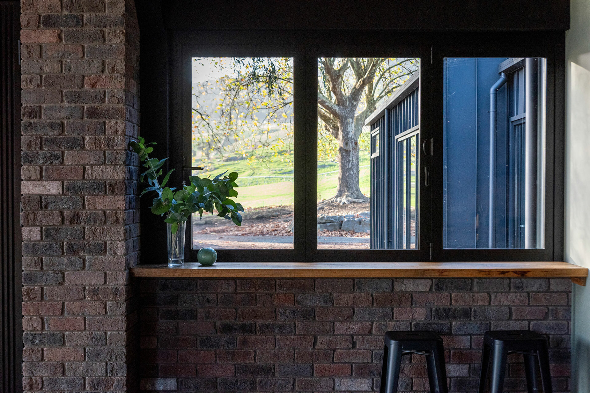 Traditionally when you hear bifold, you think doors. And yes, technically they're still doors but they make a great option for a servery area to outdoor dining etc. Here they sit atop an indoor bar seating area and are perfect for pushing fully open; stacking neatly to one side, or simply popping ajar for a fresh breeze.