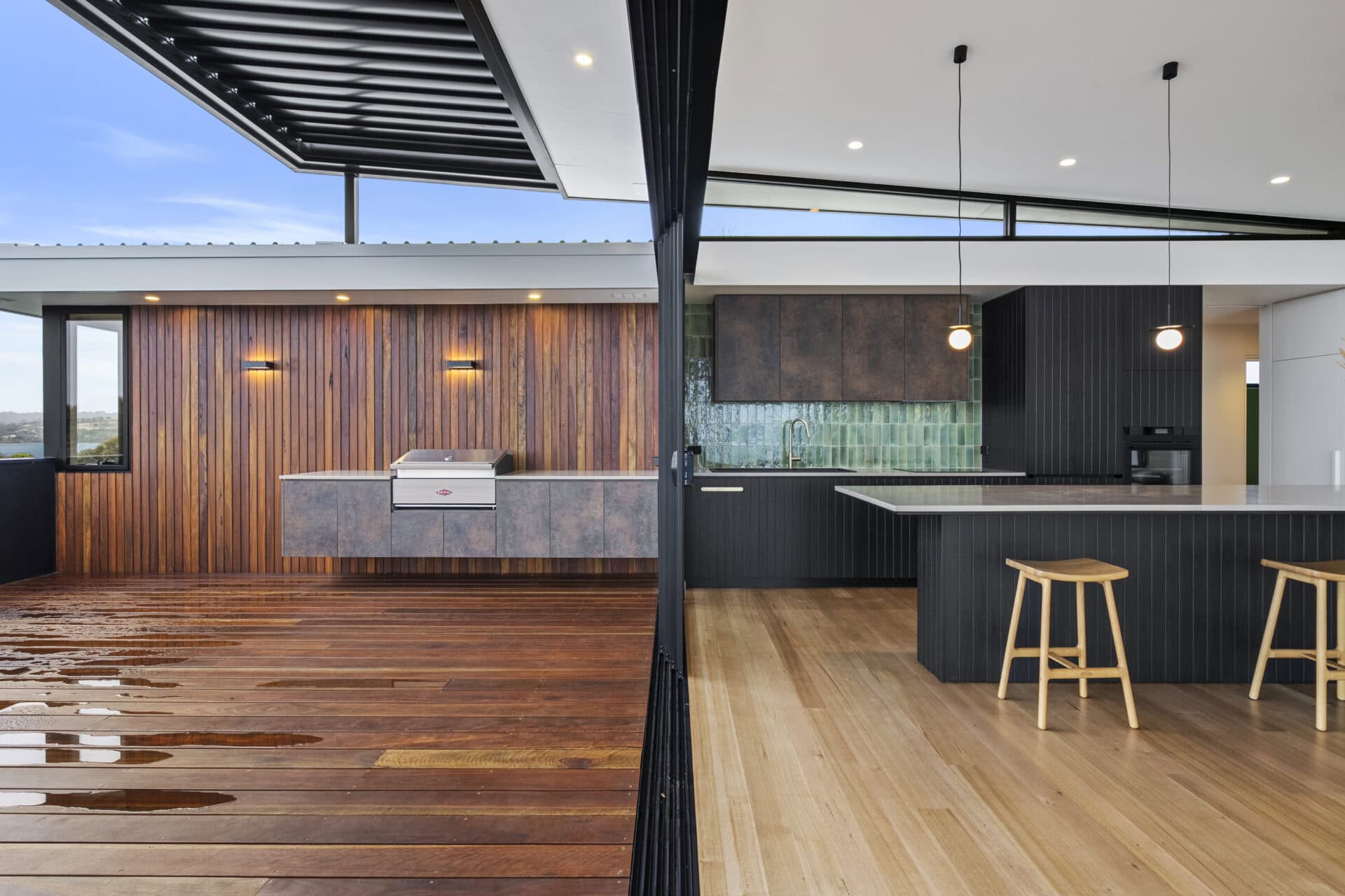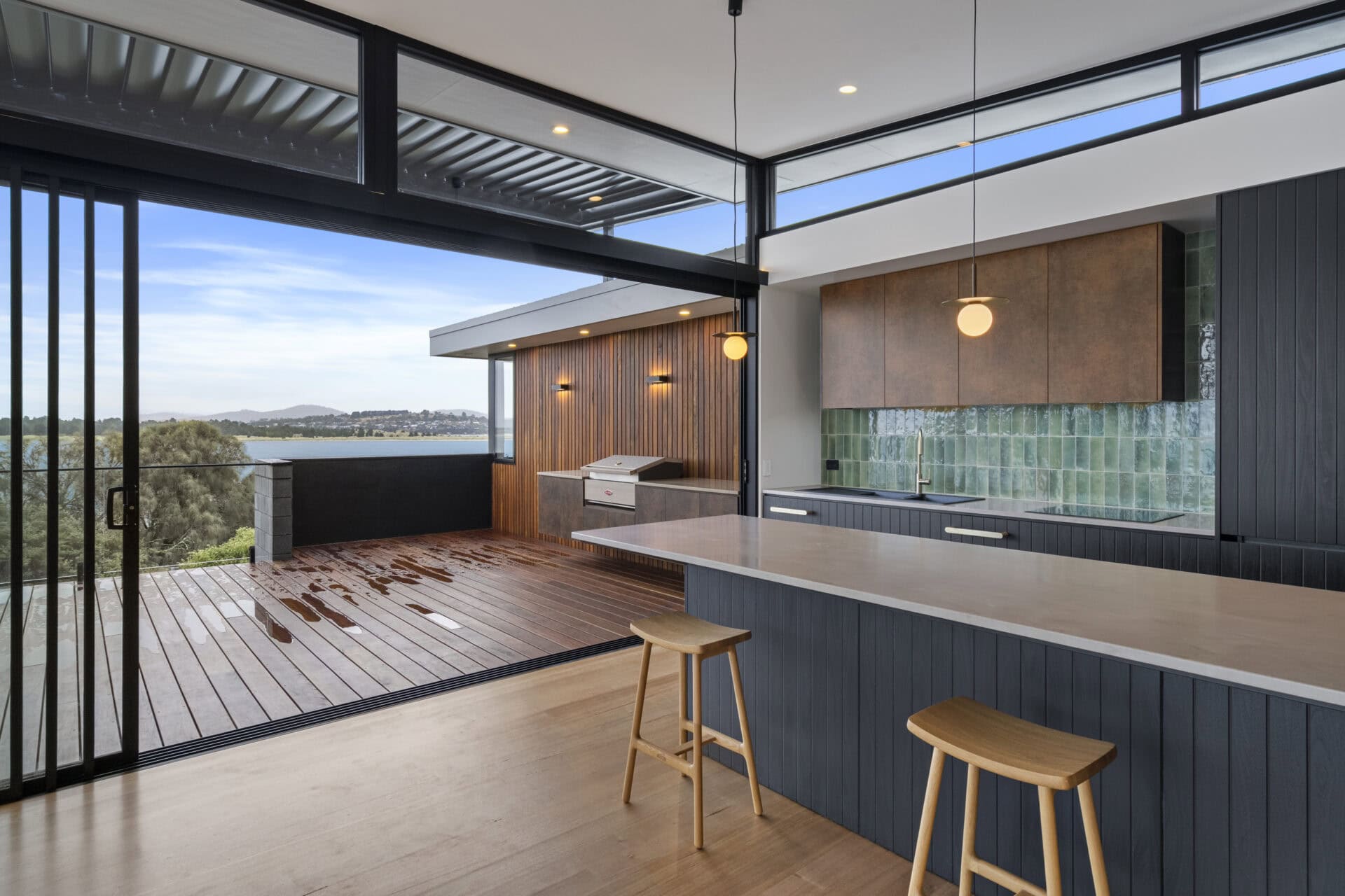 There are many reasons you might choose the stacker door, and we can see a lot of them with this project - seamless indoor outdoor flow, minimising view obstruction and contributing to the spacious open plan feel of this living space. The panels in our 245 series can span much wider than the Bi-Fold door which makes them a great access option where unspoiled vista is priority. Available in two, three, four and six panels with the ability to cater to corner openings (see the East Launceston project) the 245 is a very attractive and customisable product.